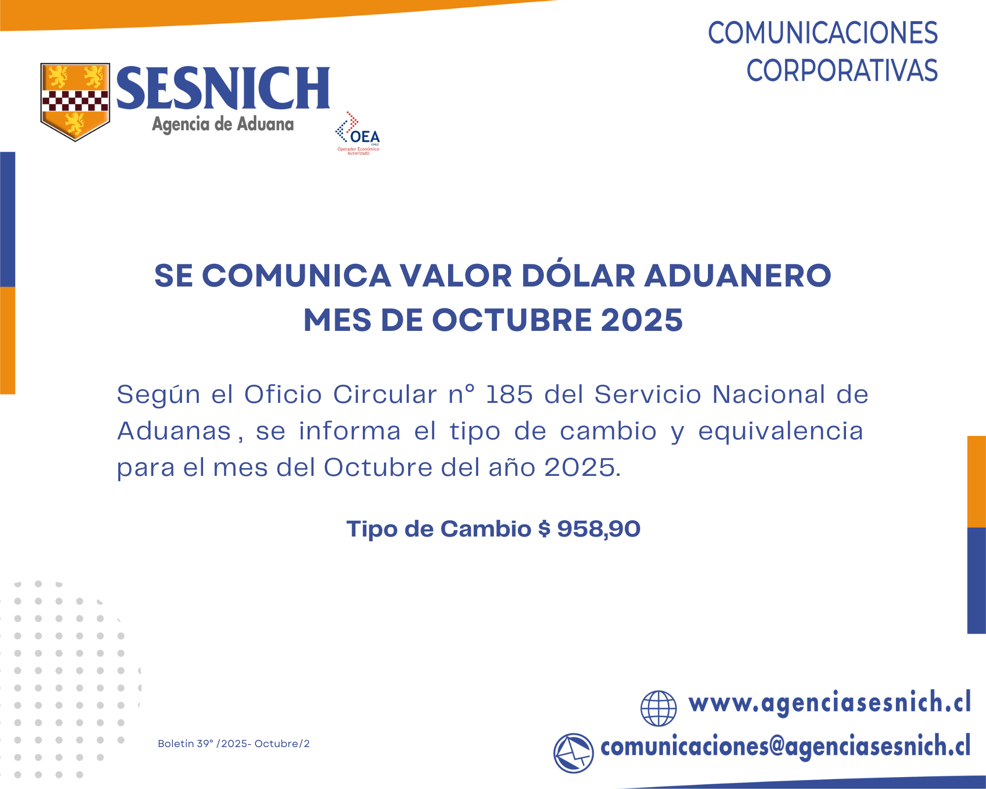 DÓLAR ADUANERO - OCTUBRE 2025: $958,90